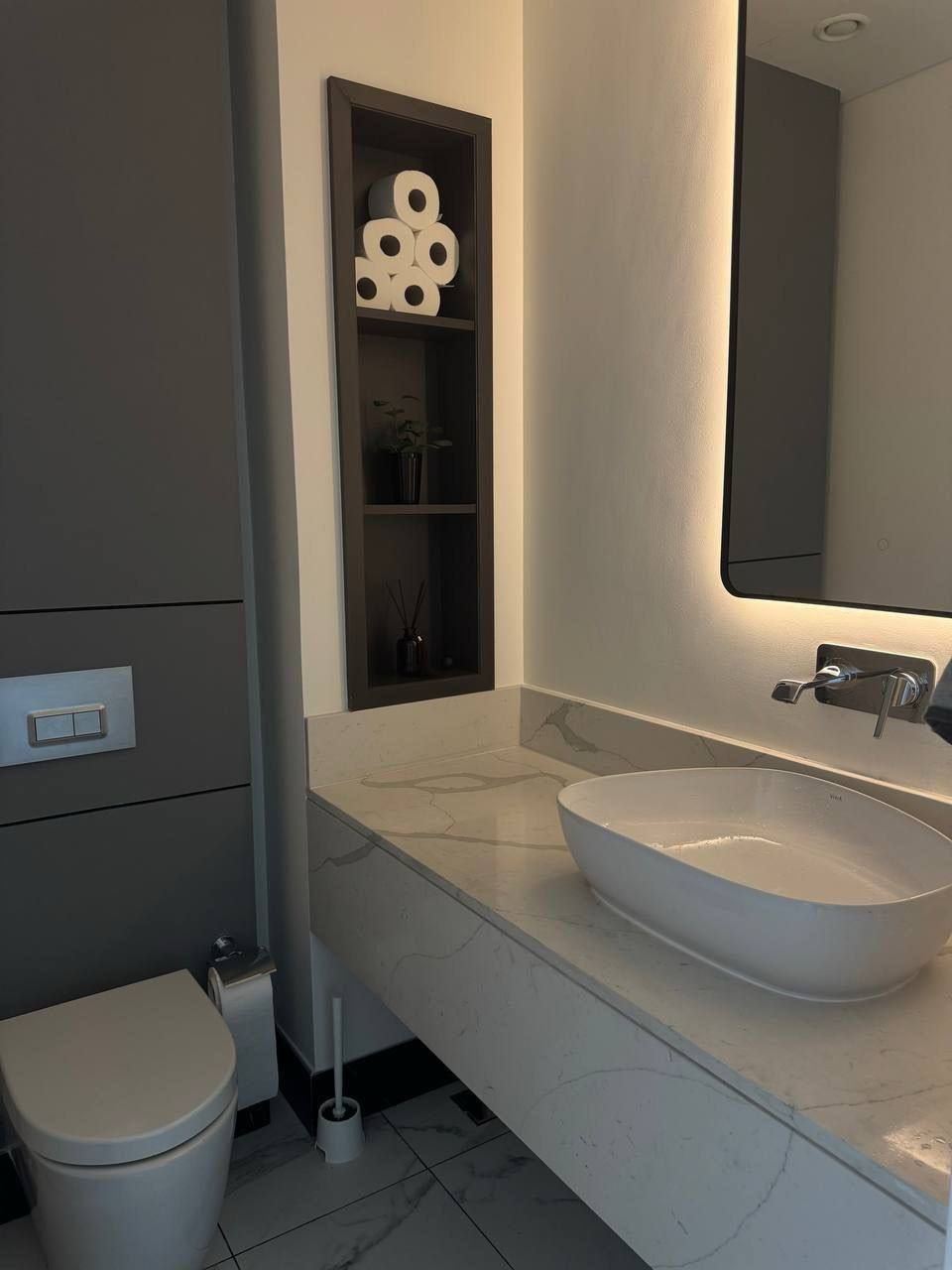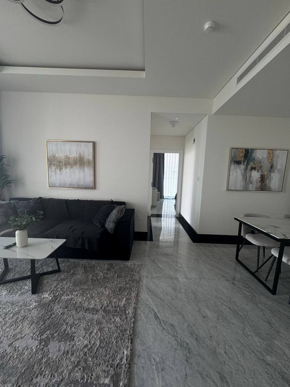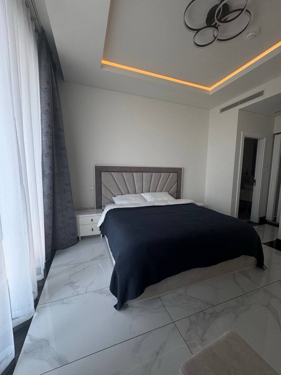 Добро пожаловать в наши стильные апартаменты! Эти просторные апартаменты предлагают современный дизайн и уютную атмосферу. В гостиной вас встретит уютный диван, который идеально подходит для отдыха после долгого дня, а большие окна наполняют пространство естественным светом.