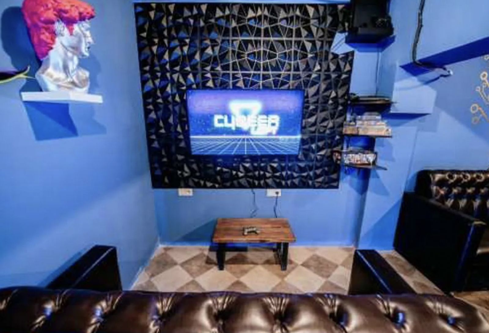 Это то лофт в стиле Cyberpunk. 2 зала с креативным дизайном, ультрафиолетовой подсветкой, баром, мягкими диванчиками и зоной для банкета.