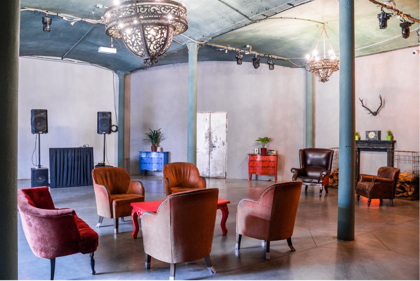 Лофт-пространство в здании XVIII века с входной группой, садом и огромной открытой верандой с видом на Яузу. Стильный зал площадью 170 метров с высокими сводчатыми потолками и интерьером старинной винотеки с баром, винным шкафом, коллекцией артефактов, уникальными люстрами XIX века. Многоуровневая подсветка позволяет воссоздать уютный клубный полумрак или акцентное освещение театральных подмостков. Можно увеличить помещение почти до 520 м2, объединив с соседним залом ROYAL.