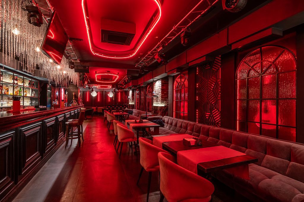 Рады презентовать бар «Red club». Вас ждет пространство 200 квадратных метров в стиле современного клуба, уютная атмосфера, комфортабельная мебель, красивый дизайн и многое другое. Наша площадка позволяет вместить в себя 60 гостей банкетом, фуршетом 100 гостей.