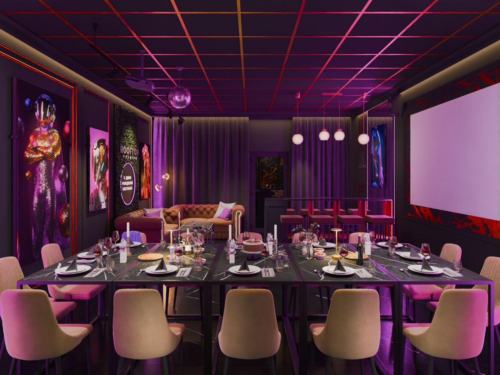 Лофт «Союз» — это уникальное пространство площадью 108 кв.м, идеально подходит для многофункциональных мероприятий, предлагая три уникальные зоны. Первое пространство, где мягкие светлые оттенки и стильный интерьер создают уютную атмосферу для приветственного коктейля или неформального общения, выступит отличной велком-зоной. Перемещаясь во вторую, с ярким неоновым освещением и футуристичными элементами, гости могут наслаждаться танцами, играми или креативными мастер-классами. В третьей части, где книжные полки и глубокие оттенки создают атмосферу уединения, можно побеседовать в кругу близких, поиграть в настольные игры или насладиться расслабляющим паровым коктейлем. Лофт «Союз» погружает в разнообразие атмосферы, где комфортно разместится 61 человек.