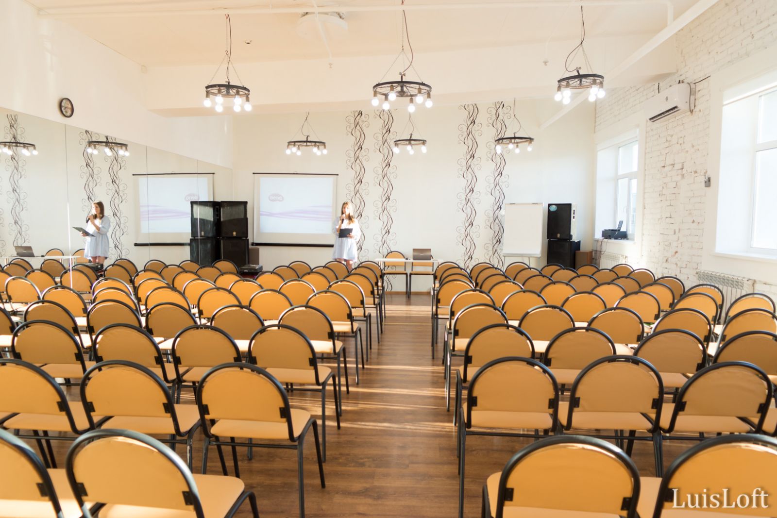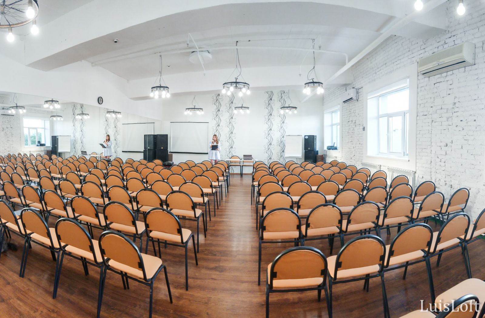Общая площадь 85 кв.м. Зал предназначен для занятий танцами, йогой, гимнастикой и вокалом, проведения семинаров и тренингов до 140 человек. Напольное покрытие - ламинат. Зеркала располагаются по длинной стороне зала, которые по запросу могут быть закрыты шторами. Зал оборудован системой кондиционирования воздуха. Зал оснащен всей необходимой музыкальной аппаратурой. Имеется бесплатный Wi-Fi. По запросу в зале можно расстелить ковер. Зал подойдет для занятий групп до 20 человек (танцы или работа на ковриках) или до 120 человек (семинары или конференции, размещение на стульях).