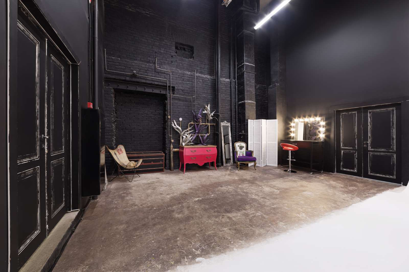К вашим услугам всё необходимое техническое оснащение и мебель. Для вашего удобства: мягкие диваны, кресла и пуфики, гримерка, гардероб, профессиональный свет для фотосъёмки, проектор, экран, микрофоны, кулер. Идеально для проведения мероприятий любого формата вместимостью до 40 гостей.