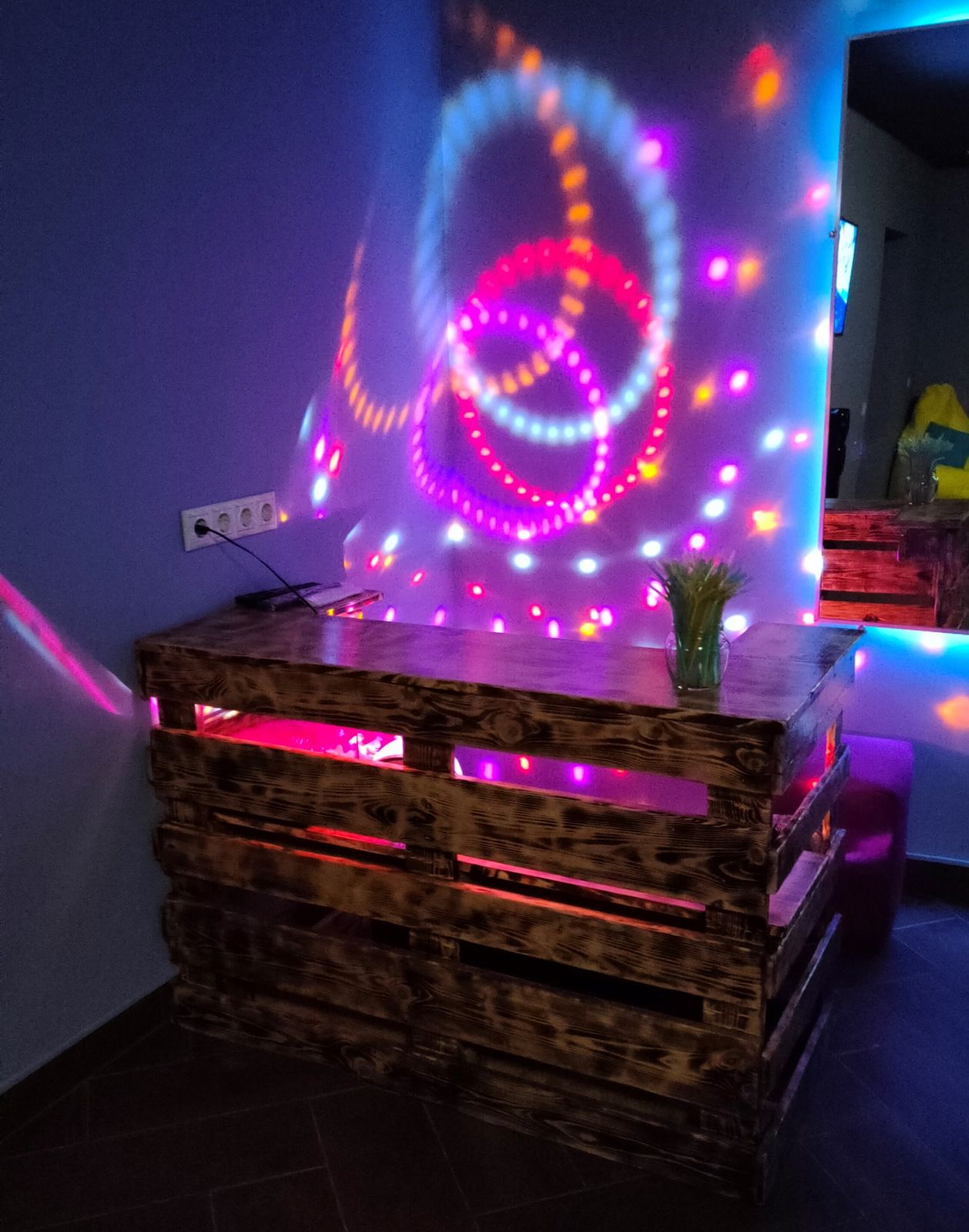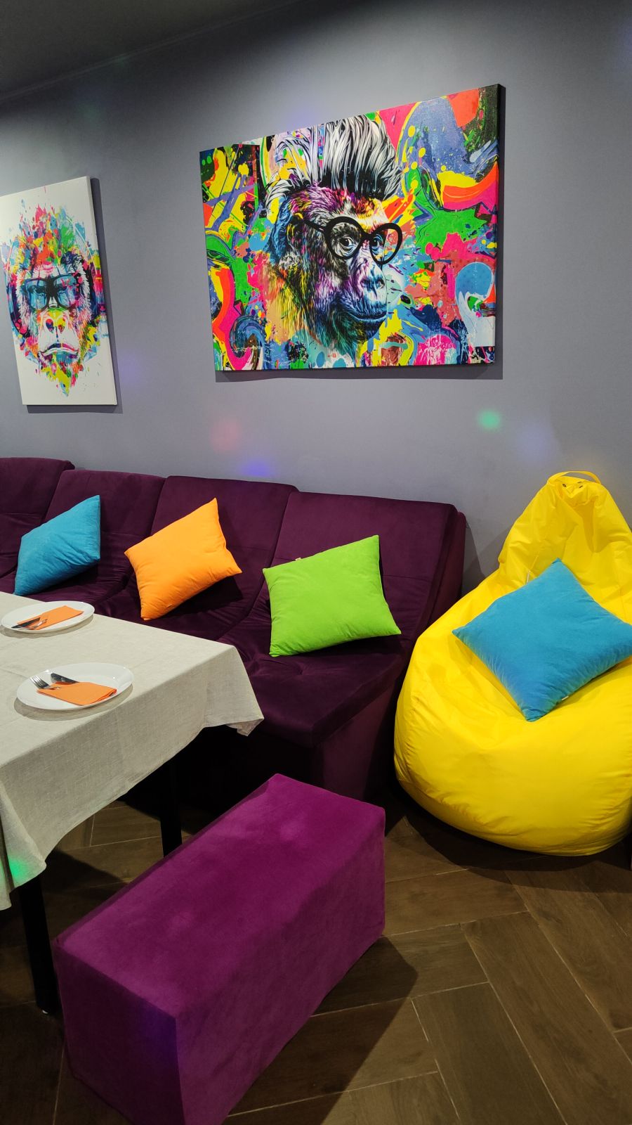 При всей яркости лофта ничто не мешает дополнительно его украсить под мероприятие. Скучать гостям здесь точно не придётся. Просторный танцпол и музыкальное оборудование позволят насладиться любимой музыкой и танцами без остановки. Караоке украсит досуг и разнообразят вечер. Можно принести свою еду и напитки, холодильник и микроволновка для кулинарных потребностей тоже есть. Удобные диванчики приглашают уставших гостей отдохнуть и расслабиться в лаунж-зоне.