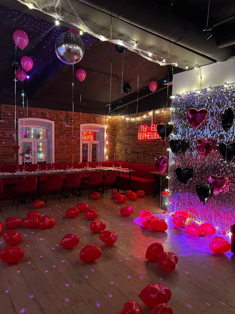 Стильный лофт - зал с караоке - это пространство, оформленное в современном стиле с неоновой подсветкой и арт-объектами. В интерьере преобладают красные оттенки, дополненные стильной мебелью и произведениями искусства, создающими эстетику роскоши.