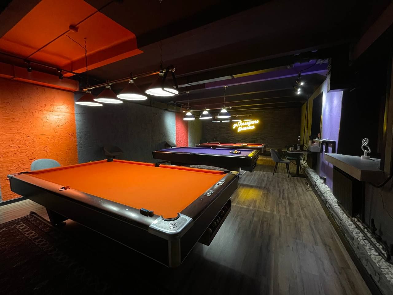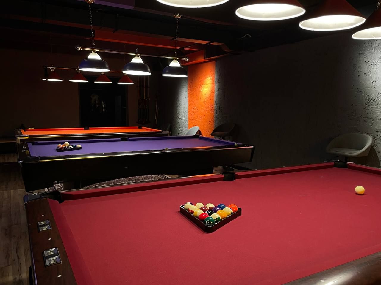 Клуб оформлен в современном стиле с элементами классического дизайна: мягкое освещение, уютные зоны для отдыха и стильные бильярдные столы, выполненные из качественных материалов.