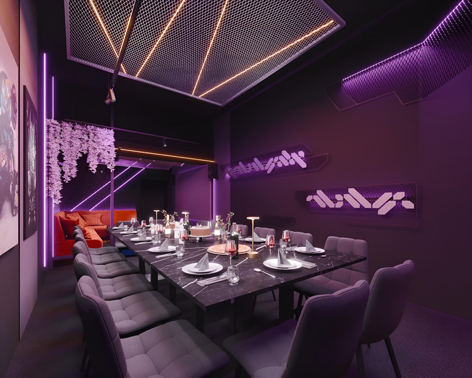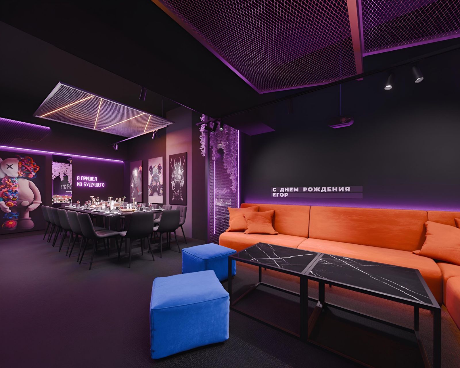 Лофт «Бэнкси» — это стильное пространство с арт-дизайном и яркими акцентами. Эффектные детали интерьера, неоновая подсветка и уютная атмосфера создают идеальные условия для вашего мероприятия. Здесь можно отметить дни рождения, провести вечеринки, творческие встречи или фотосессии. Лофт рассчитан на компанию до 24 человек.