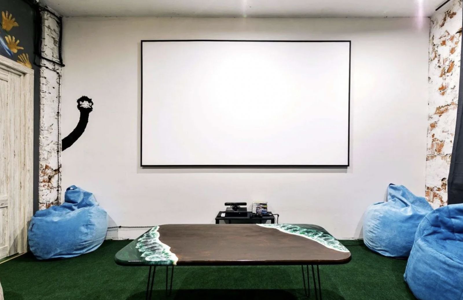Зеленый газон, граффити на стенах, мягкие пуфы, подстветка создадут атмосферу уличной вечеринки. Бери с собой друзей, еду и напитки и приходи к нам. Вы точно будете довольны!