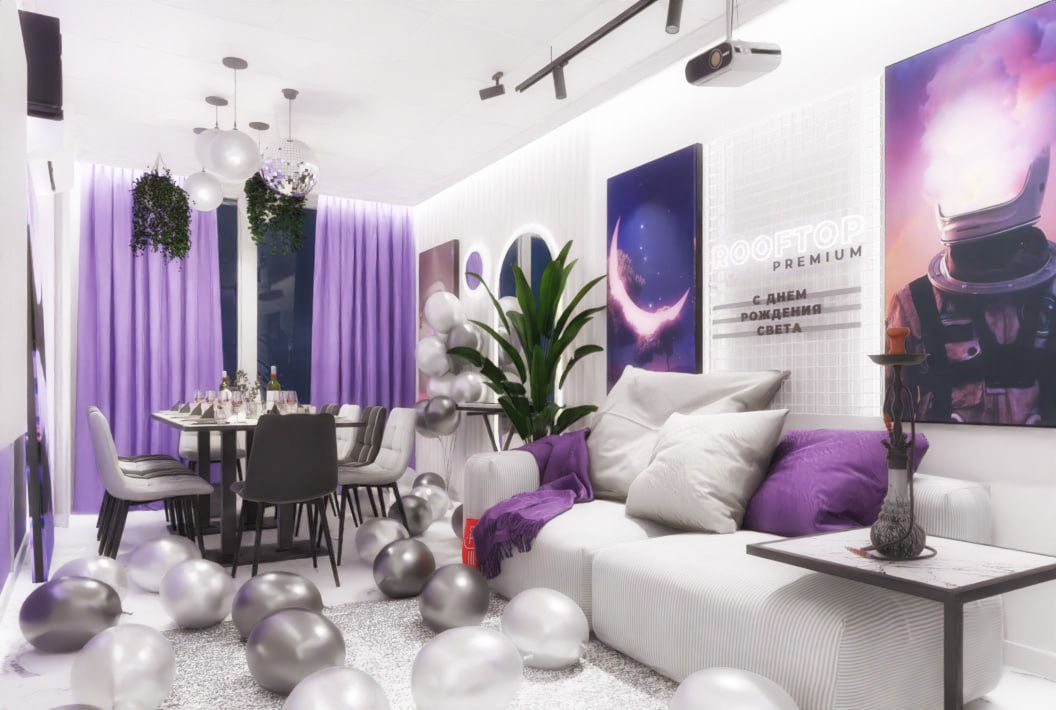 6. Веранда, где у Вас будет столик и мягкие кресла. Там Вы сможете насладиться панорамным видом на Москву, заказать еду и напитки, покурить вкусный кальян.