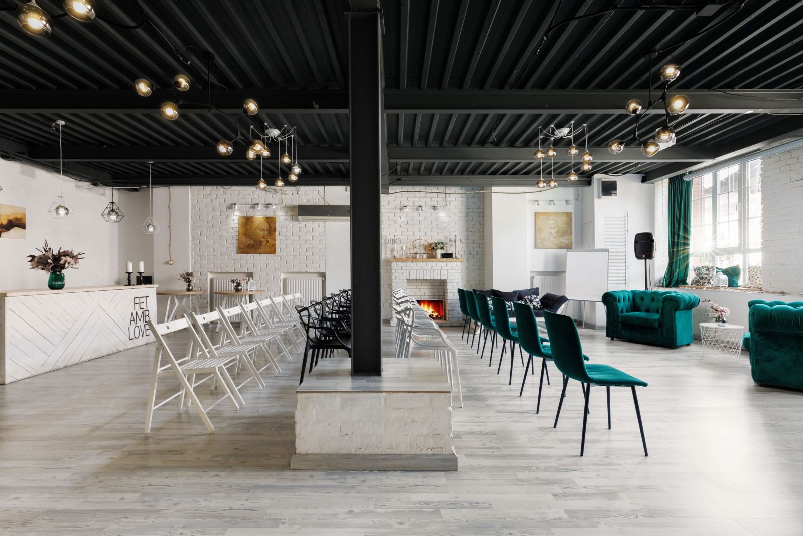 Светлый зал с камином и верандой: до 60 гостей, полный техпак, удобное брендирование и прозрачные расходы для ваших мероприятий и тренингов.