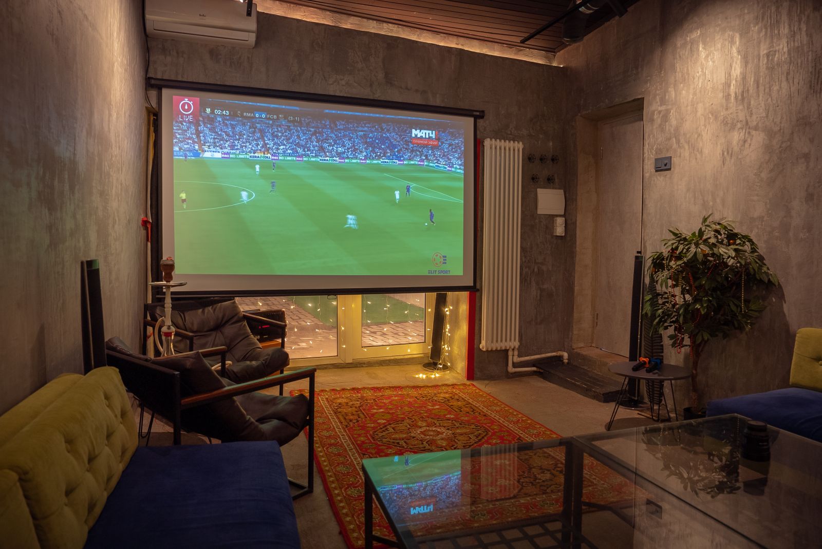 На площадке есть все необходимое для вашего мероприятия. Можно танцевать, смотреть фильмы и трансляции, петь караоке.