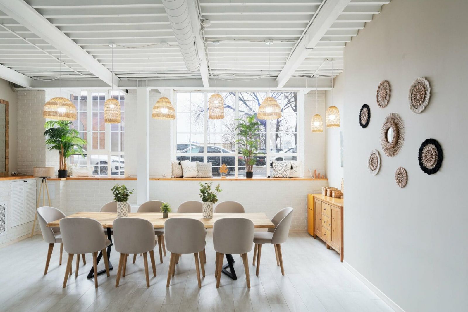 • Мебель: Мягкие стулья, диваны, мобильные столы