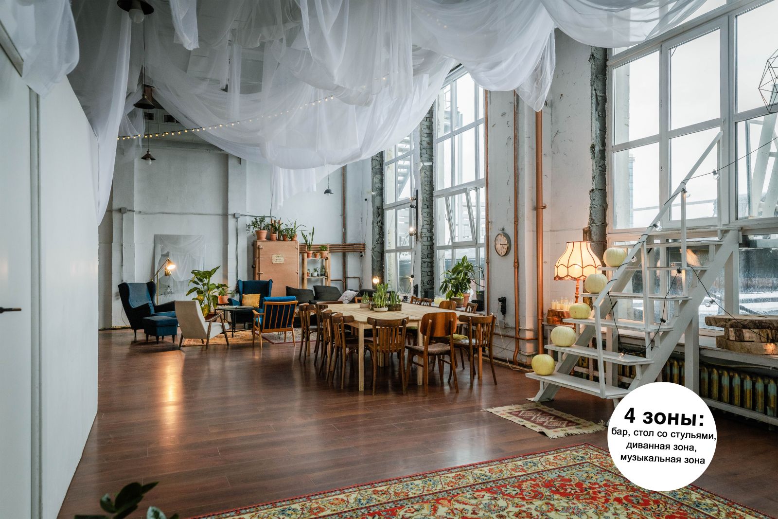 Представьте себе большую уютную квартиру и в ней гостиную. Там вы всегда хотели провести свой добрый праздник. Место, где до 50 человек чувствуют себя в своей тарелке, потому что здесь уютно, легко и безопасно.
