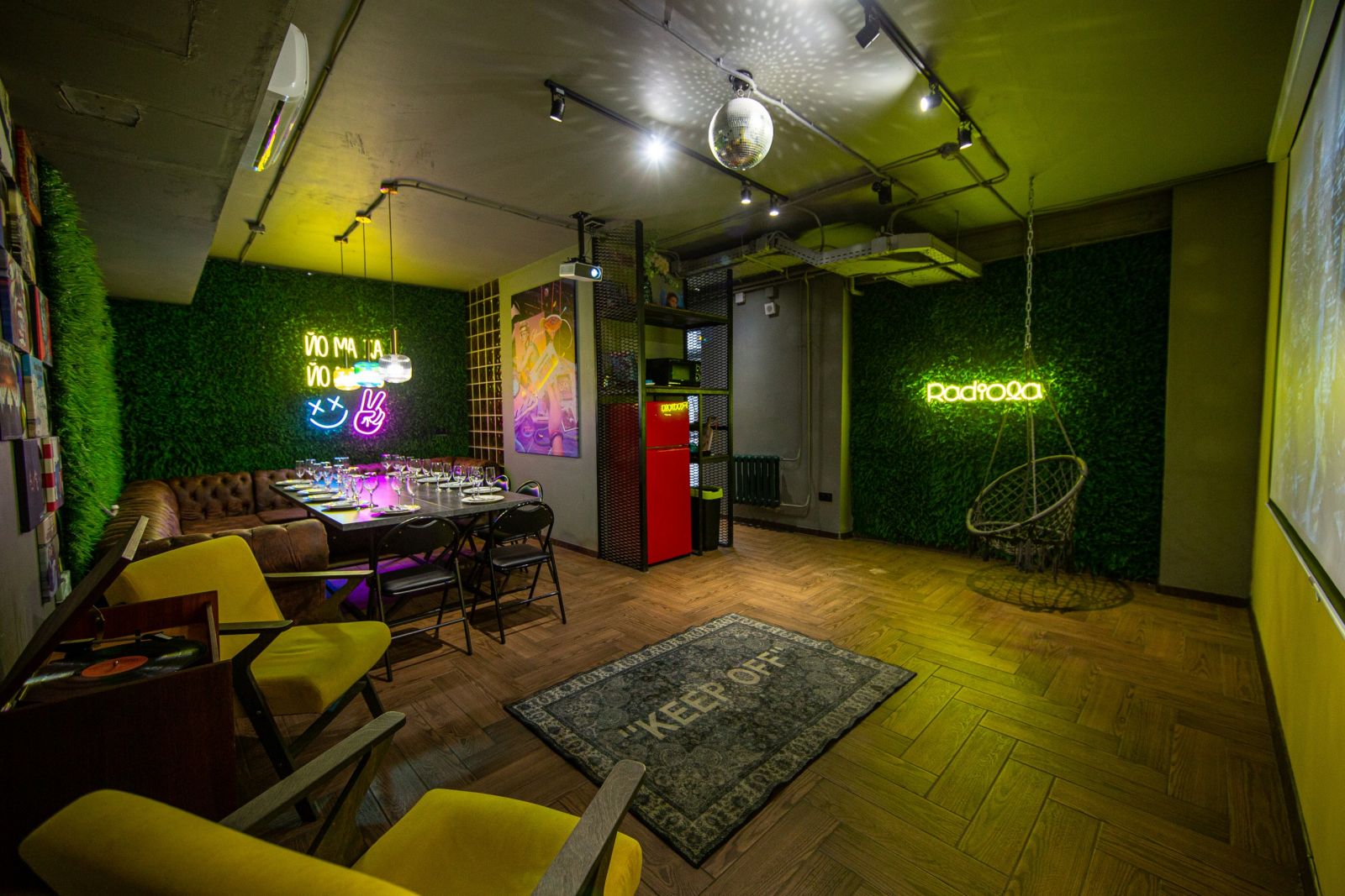 Лофт в стиле радио в арт пространстве - место, где современный дизайн встречается с духом прошлого, создавая уникальную атмосферу для вашего праздника. Интерьер помещения выполнен в современном стиле с элементами ретро, а настоящая радиола станет не только украшением, но и источником аутентичной музыки и уюта. Помещение оборудовано всем необходимым для проведения праздничных мероприятий: звуковая система высокого качества, освещение, комфортные зоны отдыха и танцпол.