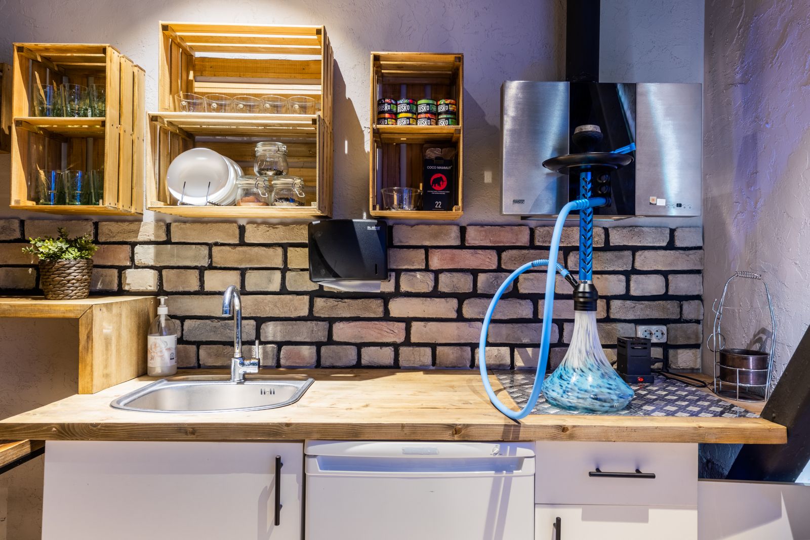 В зале расположены уютные диваны, мини кухня с посудой, холодильник, TV, приставка PS 4, караоке система.