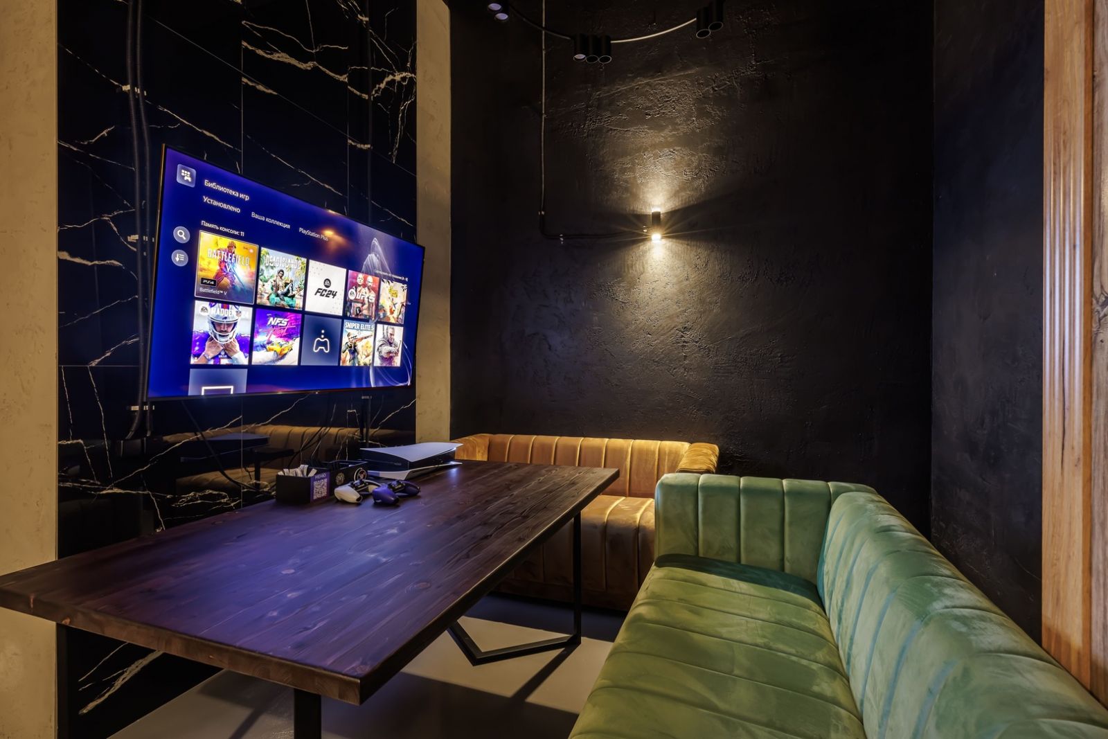 1) Небольшая и уютная с PS5, рассчитанная до 8 человек.