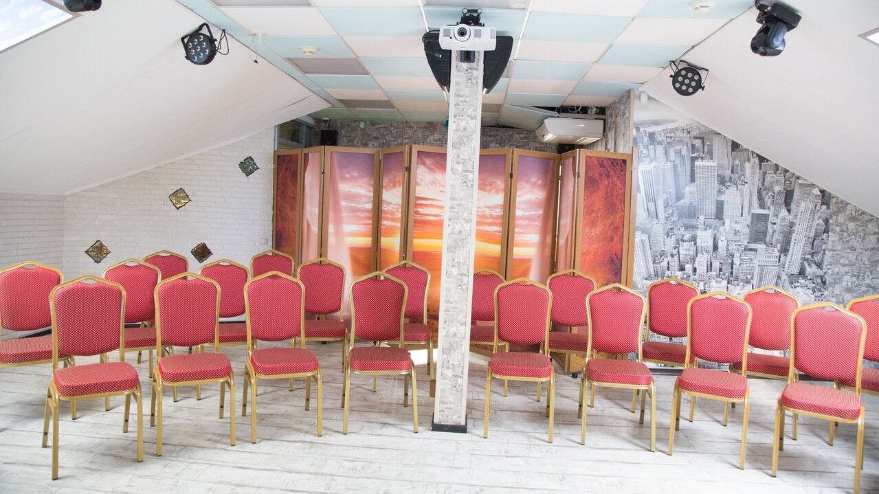 * Основной зал 70 м2 (с большим панорамным окном+2 мансардных) Используется как обучающий зал/аудитория или как площадка для праздников.