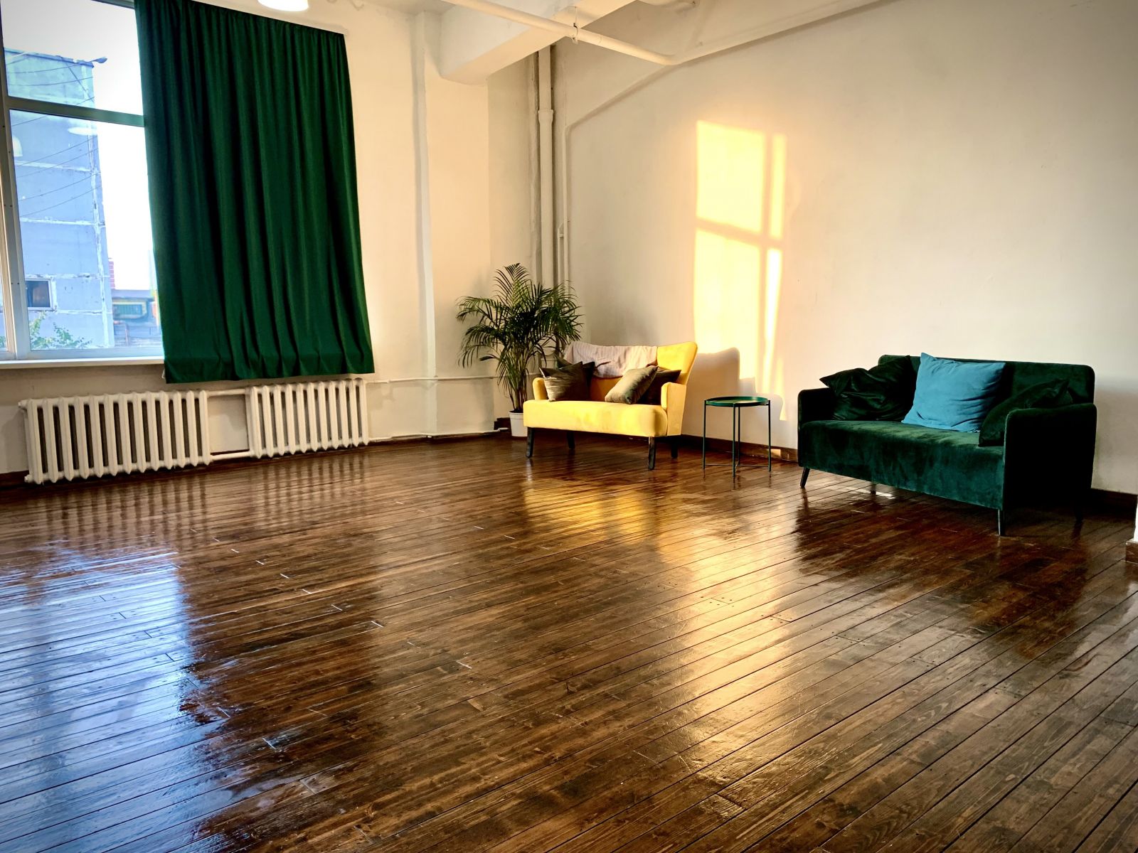 В лофте есть аудиосистема, световое оборудование, проектор, микрофоны, мебель ( диваны, стулья , столы, столики, шезлонги…)