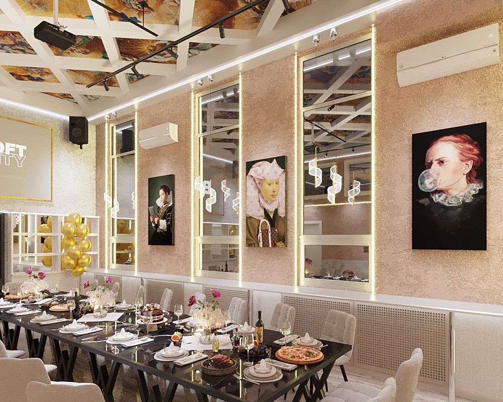 Лофт «Необарокко» — стильное пространство с яркими деталями и неоновой подсветкой. Элегантный интерьер с дизайнерскими картинами и мягким освещением создает уютную атмосферу. Лофт идеально подходит для дней рождений, встреч с друзьями, корпоративных мероприятий и креативных вечеров. Пространство рассчитано на 18 человек.