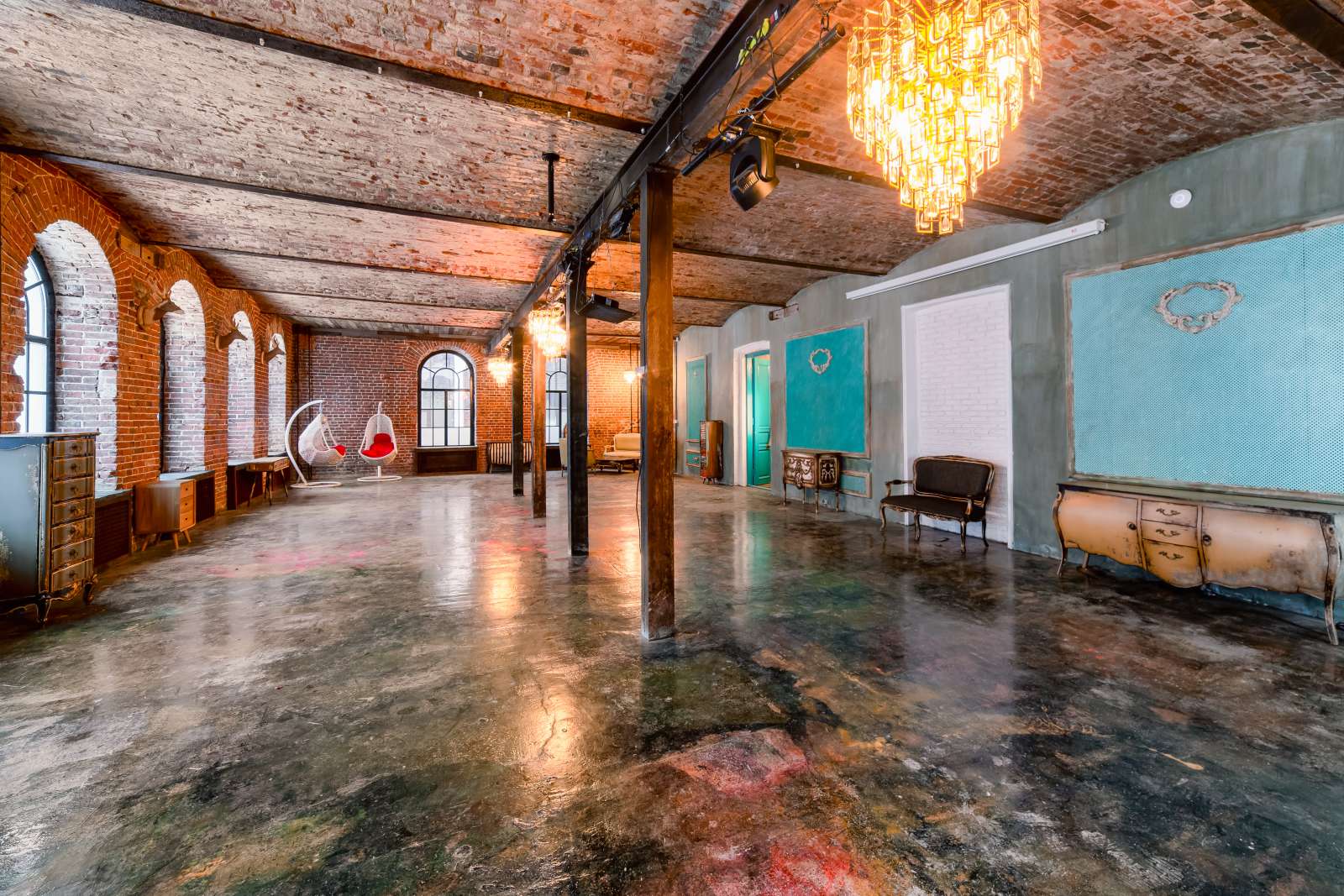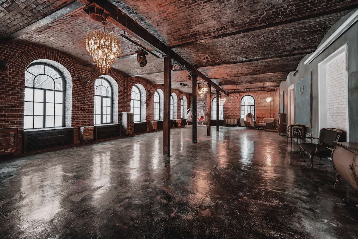 Большое стильное пространство площадью 200 м2 расположено в 5 минутах от ст.м. «Автозаводская». Огромные полукруглые окна, высокие потолки, отделка зала выполнена с безупречным вкусом и заслуживает отдельного внимания. Кирпичная кладка прекрасно гармонирует с интересным напольным покрытием, со сводчатого потолка свисают роскошные люстры, а балки добавляют пространству высоты.