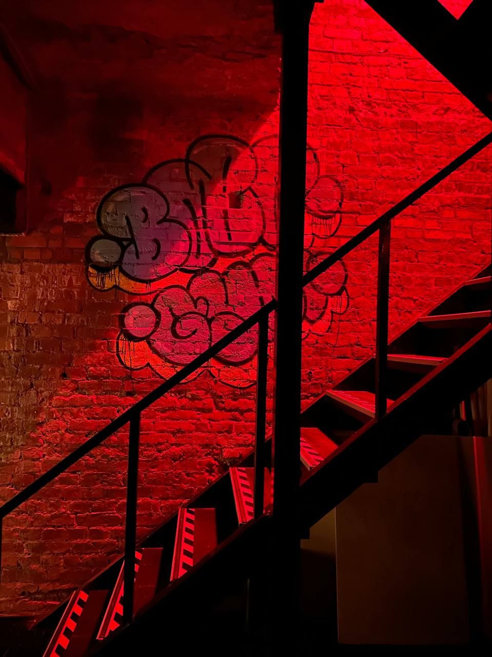 Наш спортклуб с высокими потолками и открытыми кирпичными стенами в граффити создают идеальную обстановку для тренировок и фотосессий.