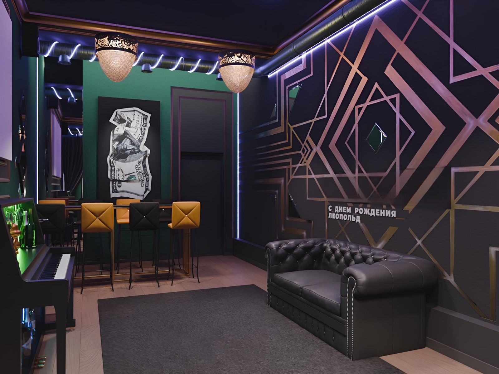 Премиальный лофт «шелби» – идеальное место для празднования особых событий. Интерьер выполнен в темных тонах с акцентом на элегантность и комфорт. Лофт рассчитан на компании до 21 гостя.