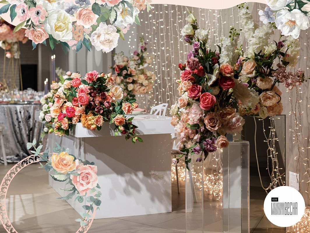 - полностью задекорированную площадку с оформленной входной группы, столами и зоной велкома;