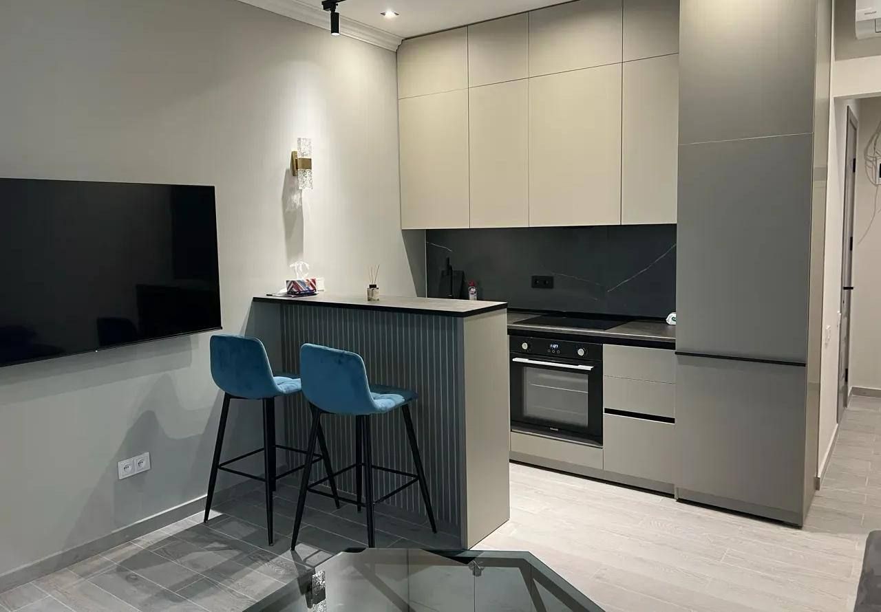 Абстрактная картина над цветочным горшком придаст вашему интерьеру нотку креативности. А деревянные шкафы и техника на кухне добавят warmth и натуральности, создавая гармонию в вашем доме.