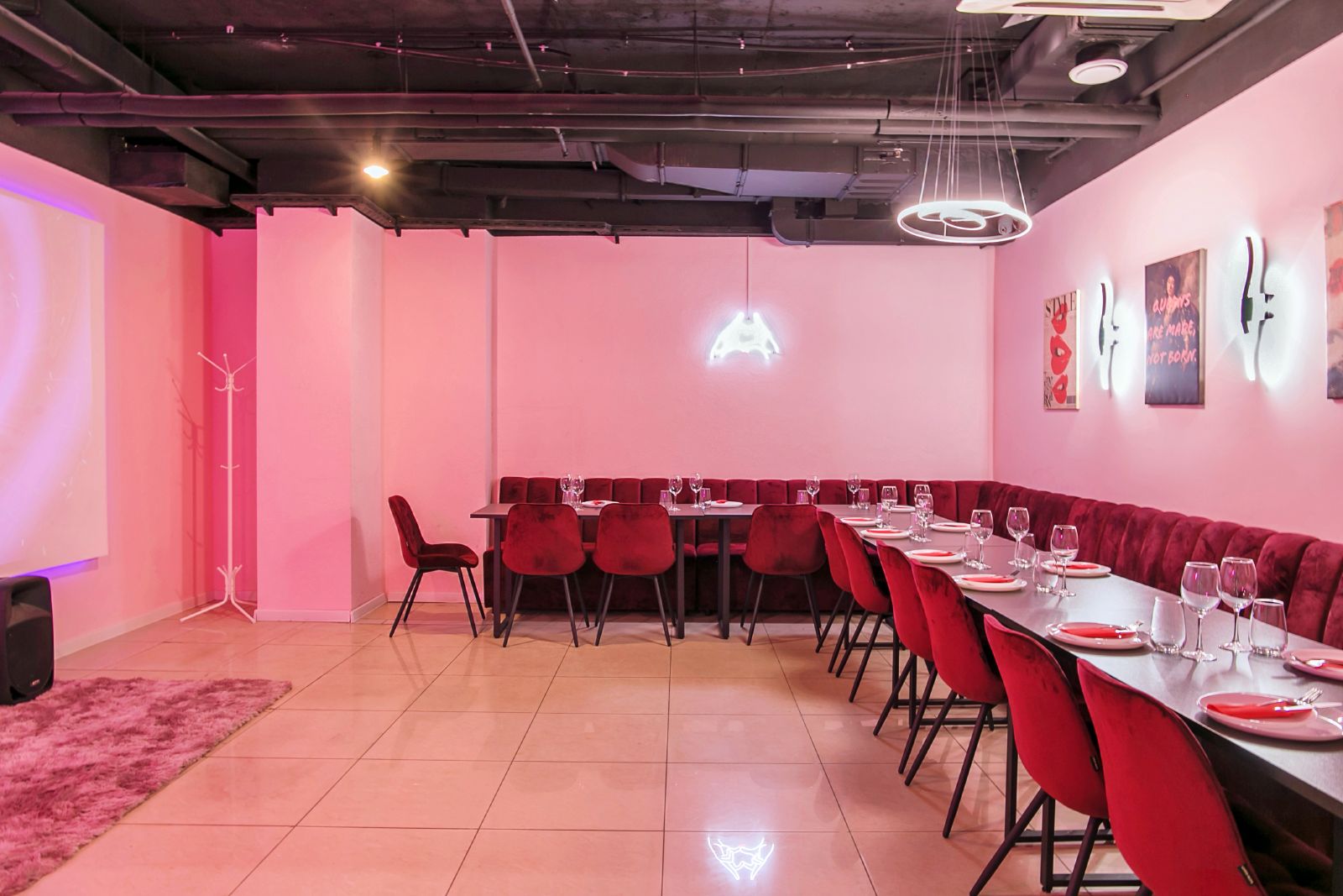 Зал QUEEN поможет настоящим королевам провести мероприятие так, как захотят они. Зал оформлен в розово-бордовых тонах.